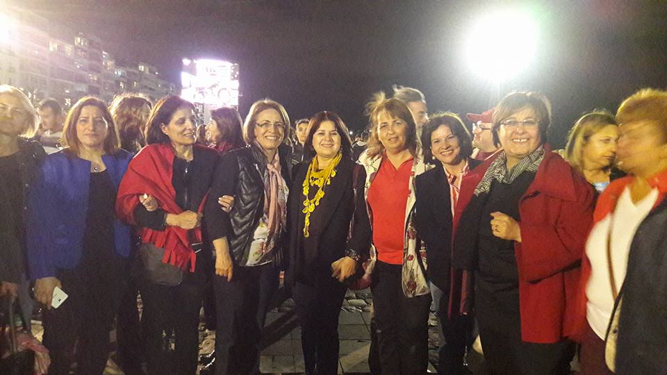 Kadın Kolları Genel Başkanı Fatma Köse ve MYK üyeleri, TBMM Başkanı İsmail Kahraman’ın, Laiklik ilkesinin anayasadan çıkarılması söylemi üzerine İzmir’de "Laikliğe sahip çık" eylemine katılarak, protesto ettiler.