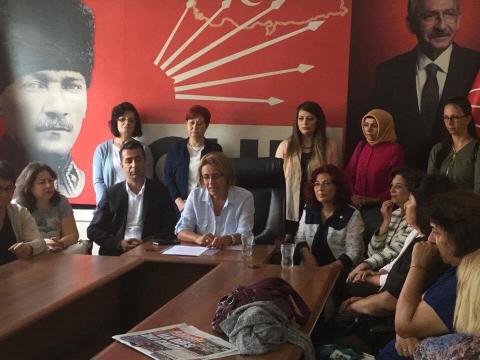 CHP KADIN KOLLARI GENEL BAŞKANLIĞI GÜDÜL’DE ’MEDENİ HUKUK VE LAİKLİĞİ HEDEF ALAN’ ALİ EDİZER İLE İLGİLİ BASIN AÇIKLAMASI DÜZENLEDİ