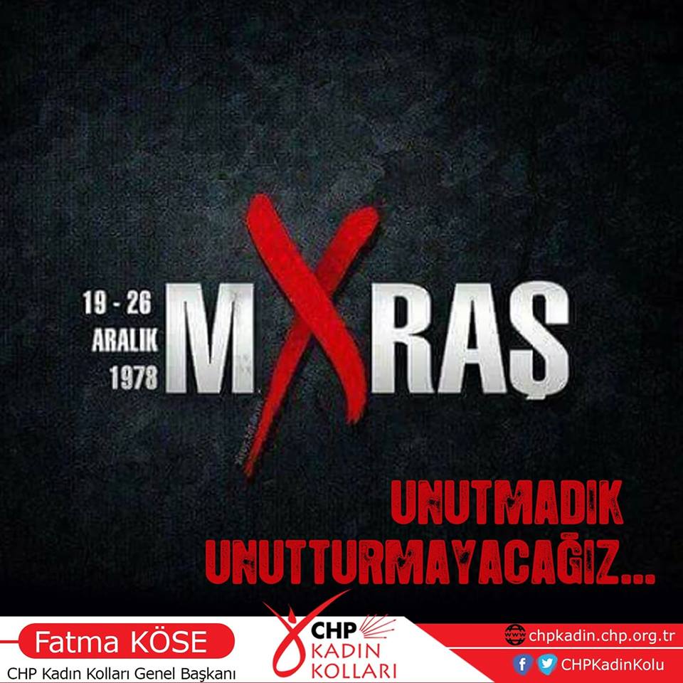 Cumhuriyet Halk Partisi Kadın Kolları Genel Başkanı Fatma Köse, Maraş katliamının yıldönümünde anma mesajı yayımladı. Mesajında;Maraş’ta yaşanan katliamın bir insanlık ayıbı olduğuna işaret eden Başkan Köse, "Bu katliamlarda yakınlarını kaybedenlerin, bu acılı günlerin yıl dönümünde acılarını yaşamaları, paylaşmaları, yitirdikleri canları anmaları engellenmektedir. Yurttaşlarımızın isteği devletin bu anmaları değil her türlü katliamı engellemesi, baskılara son vermesidir. Maraş Katliamında hayatını kaybeden yurttaşlarımızı saygıyla anıyor, Maraş Katliamını ve sebep olanları bir kez daha kınıyorum” dedi.
