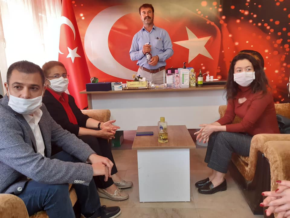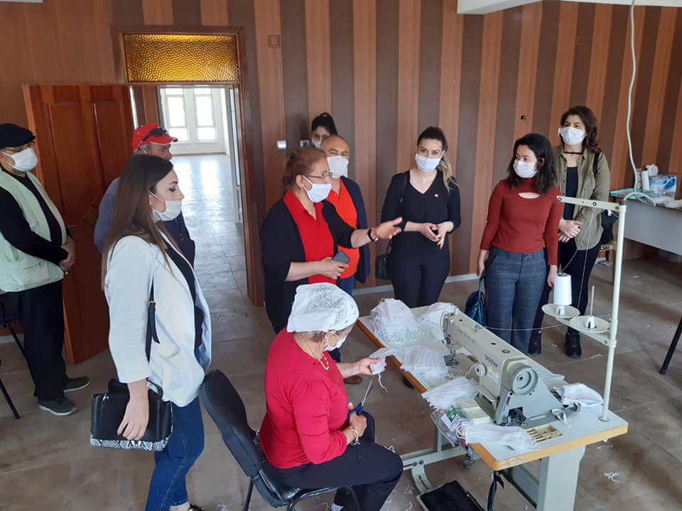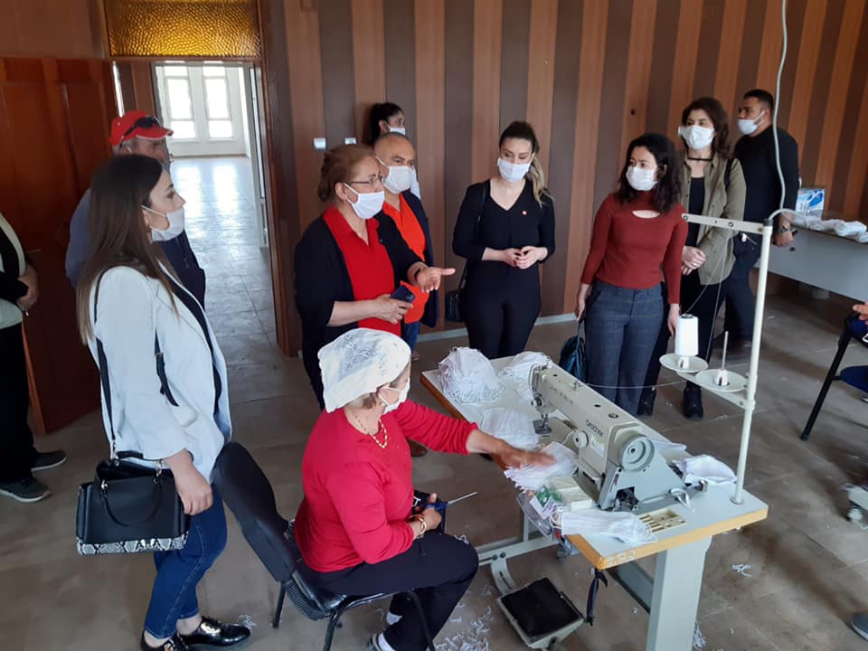 Kadın Kolları Genel Başkanımız Sayın Fatma Köse, Mersin İl KK Başkanımız, Tarsus İlçe Başkanımız ve İlçe KK Başkanımız ile birlikte, Tarsus Yeşiltepe Mahallesi’nde gönüllü olarak maske üreten kadınlarımızı ziyaret ederek emeklerinden dolayı teşekkür ettiler. Ardından Tarsus Yeşiltepe Mahalle Muhtarı İmadettin Söyleme’yi ziyaret ederek, karantina süresince ihtiyaç sahibi mahalleli kadınlar ve aileleri hakkında bilgi aldılar, şiddete uğrayan kadınlarımızın destek alabilecekleri kurumlar hakkında bilgilendirilmesinin ne kadar önemli olduğunun altını çizdiler.